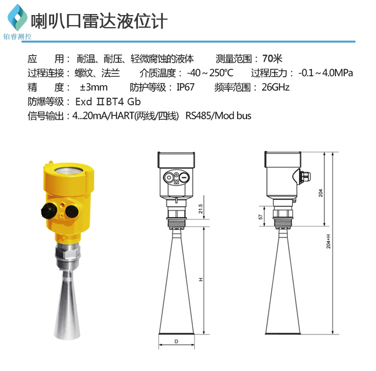鉑睿高精度防腐型喇叭口雷達(dá)液位計(jì)