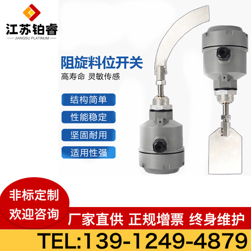 阻旋開(kāi)關(guān)是用于固態(tài)物料(包括粉狀、塊狀、粒狀、膠狀等)的物位控制器。它具有密封性好、過(guò)載能力強(qiáng)、輕便易裝、輸出觸點(diǎn)容量大等優(yōu)點(diǎn)。針對(duì)不同比重的物料可通過(guò)調(diào)彈簧的拉力來(lái)實(shí)現(xiàn),其接觸物料部分全為不銹鋼材料。