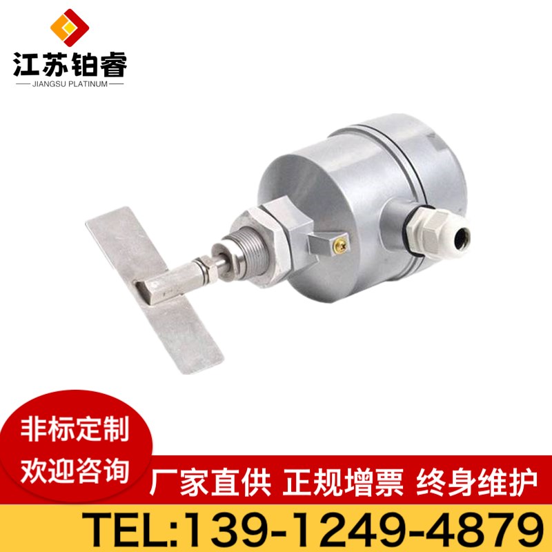阻旋式料位開(kāi)關(guān)是利用微型馬達(dá)做驅(qū)動(dòng)裝置,傳動(dòng)軸與離合器相連接,當(dāng)未接觸物料時(shí),馬達(dá)正常運(yùn)轉(zhuǎn),當(dāng)葉片接觸物料時(shí),馬達(dá)停止轉(zhuǎn)動(dòng),檢測(cè)裝置輸出一接點(diǎn)信號(hào),同時(shí)切斷電源停止轉(zhuǎn)動(dòng)。簡(jiǎn)介阻旋開(kāi)關(guān)是用于固態(tài)物料(包括粉狀、塊狀、粒狀、膠狀等)的物位控制器。它具有密封性好、過(guò)載能力強(qiáng)、輕便易裝、輸出觸點(diǎn)容量大等優(yōu)點(diǎn)
