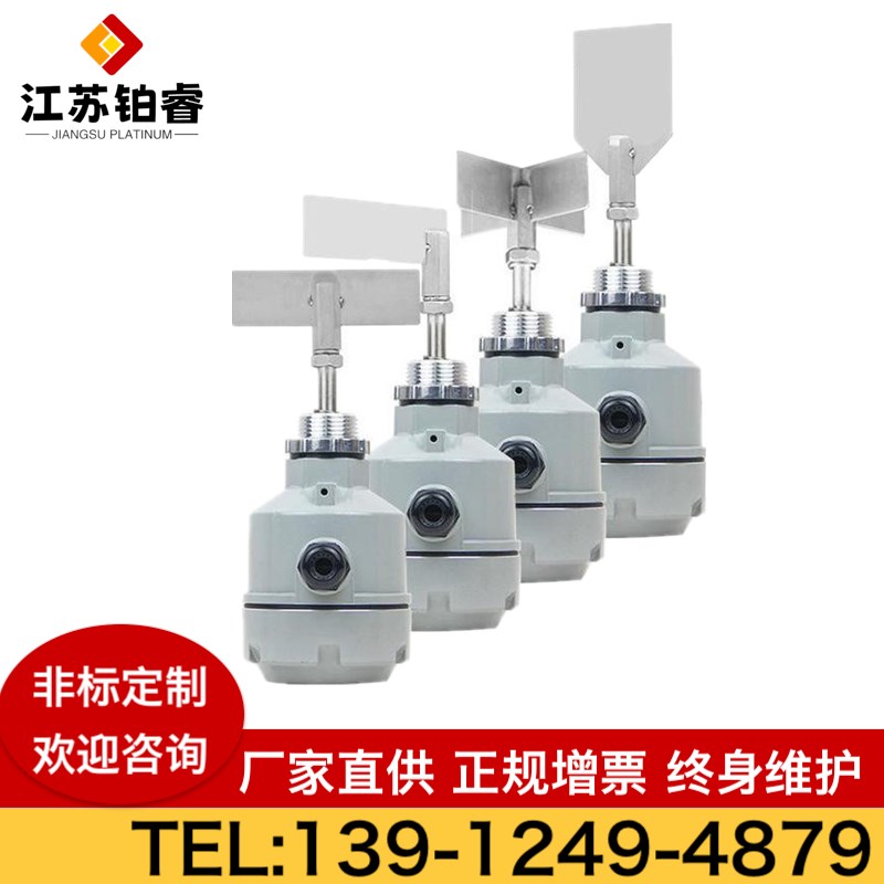 2、阻旋料位開(kāi)關(guān)應(yīng)避免安裝在進(jìn)料口,當(dāng)無(wú)法避免時(shí)可加裝防護(hù)擋板,以保護(hù)葉片不受物料沖擊。