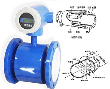 在結(jié)構(gòu)上,電磁流量計(jì)由電磁流量傳感器和轉(zhuǎn)換器兩部分組成。傳感器安裝在工業(yè)過程管道上,它的作用是將流進(jìn)管道內(nèi)的液體體積流量值線性地變換成感生電勢信號,并通過傳輸線將此信號送到轉(zhuǎn)換器。轉(zhuǎn)換器安裝在離傳感器不太遠(yuǎn)的地方,它將傳感器送來的流量信號進(jìn)行放大,并轉(zhuǎn)換成流量信號成正比的標(biāo)準(zhǔn)電信號輸出,以進(jìn)行顯示,累積和調(diào)節(jié)控制。